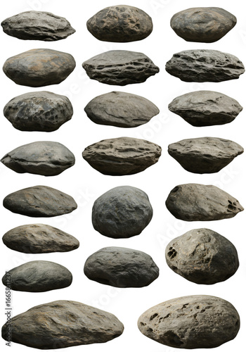 Isolated Stones Of Various Shapes And Textures Against Transparent Background Photo
