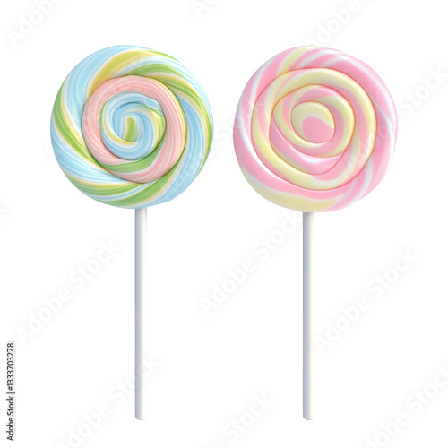 Isolated Swirled Pastel Lollipop Duo on White Sticks