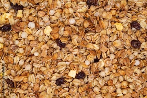 Isolated texture of granola, top view, close up