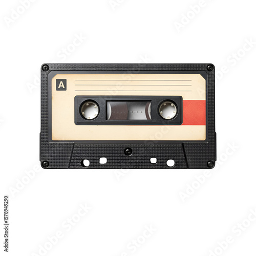 Isolated Transparent Background of Black Audio Cassette Tape Music