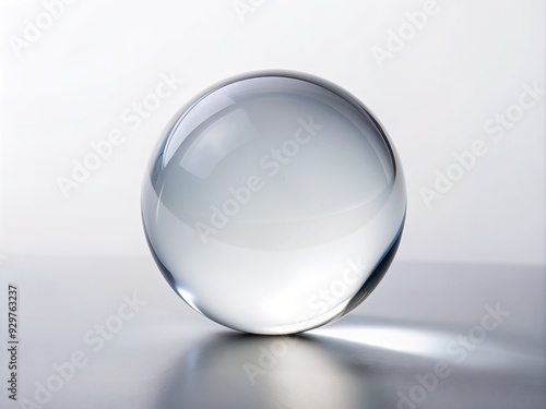 Isolated transparent glass sphere showcasing perfect clarity and flawless reflection against pristine white background, emphasizing simplicity and minimalism in product photography.