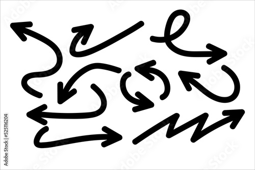 Isolated vector hand drawn arrows set on a white background. Doodle Vector Arrow Set.