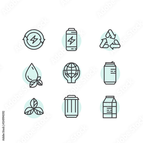 Isolated Vector Style Illustration Logo Set Badge with Recycling and Waste Concept, Renew Energy Ecological Stamps