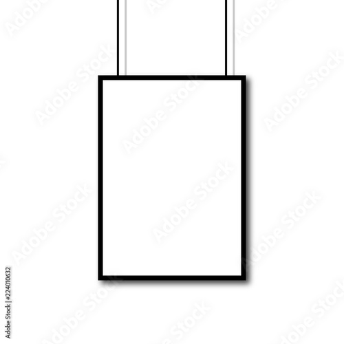 Isolated vertical hanging poster mock up on white background. Banner Illustration.