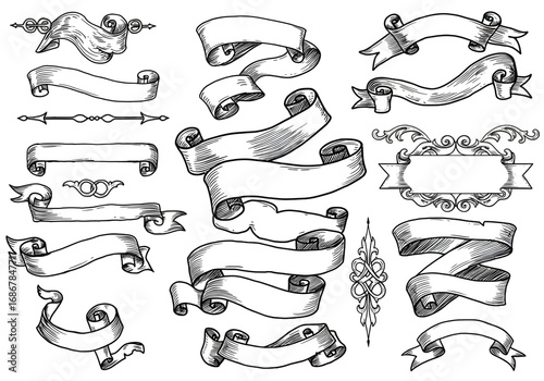 Isolated Vintage Ribbon Banners in White on a Black Background Illustration