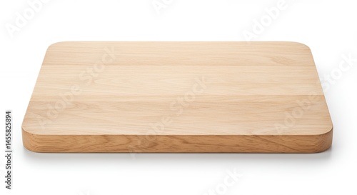 Isolated wooden cutting board against a white background with natural wood grain texture