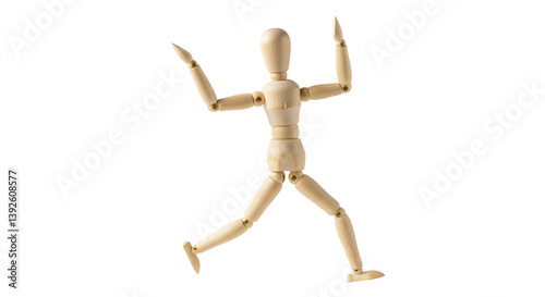 Isolated Wooden mannequin with raising hands