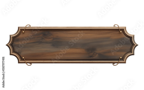 Isolated wooden sign board hanging with rope for text space mockup background on transparent background