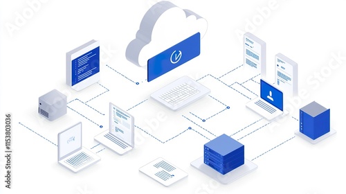 isometric a business environment where hybrid cloud solutions enable seamless collaboration across global teams