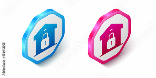 Isometric Closed warehouse icon isolated on white background. Hexagon button. Vector