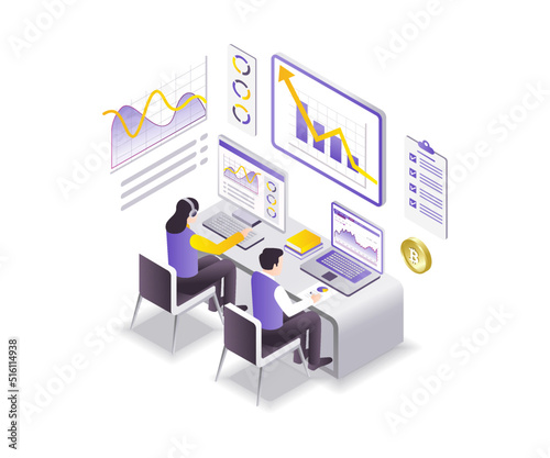 Isometric design concept learning online trading investment business