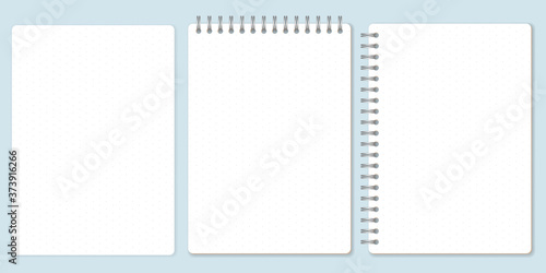 Isometric dot paper set, template of spiral notebook and notepad sheets. Vector Illustration.