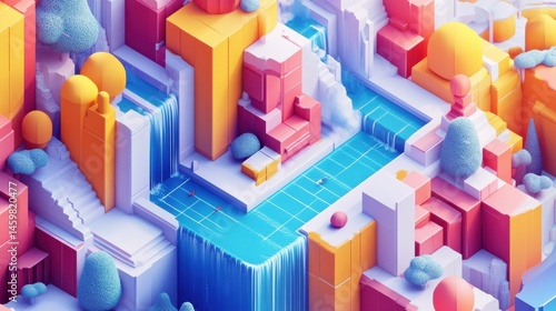 Isometric Illustration of a Colorful Geometric Landscape