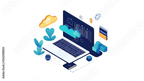 Isometric Illustration: Secure Cloud Data Management on Laptop AI Generated