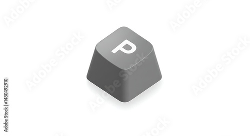 Isometric keyboard key 'P' on white background