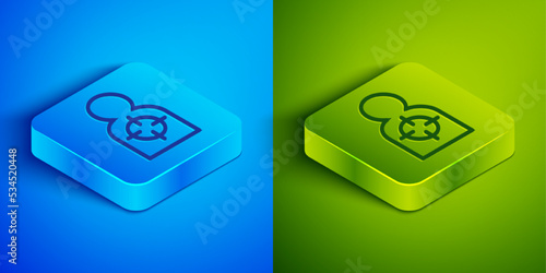 Isometric line Human target sport for shooting icon isolated on blue and green background. Clean target with numbers for shooting range or shooting. Square button. Vector