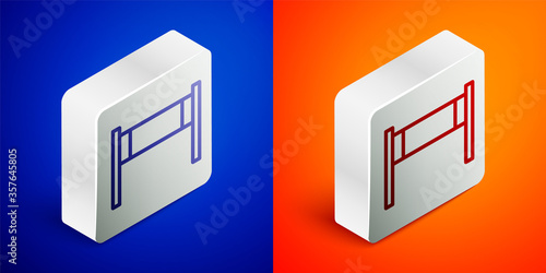 Isometric line Volleyball net icon isolated on blue and orange background. Silver square button. Vector Illustration.