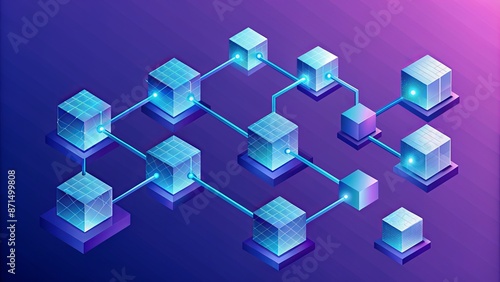 Isometric roadmap with numerous steps and cubes in varying sizes on a purple-blue background, ideal for blockchain project presentation.
