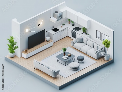 Isometric view of a smart apartment with interconnected IoT systems for personalized automation