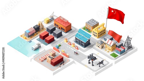 Isometric View of an Industrial Port: A Detailed Depiction of Global Trade and Logistics in Action