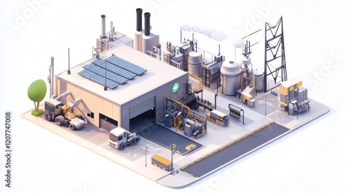 Isometric View of Modern Industrial Factory with Machinery and Equipment