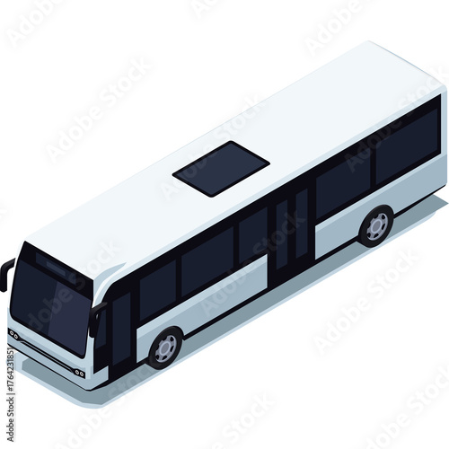 Isometric White Bus with Dark Windows and Black Roof Hatch on a White Background for Transportation Concepts