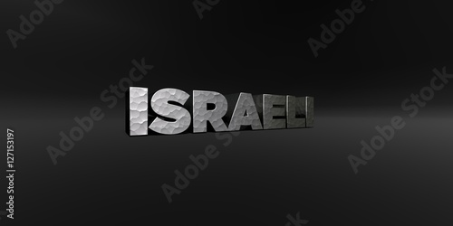 ISRAELI - hammered metal finish text on black studio - 3D rendered royalty free stock photo. This image can be used for an online website banner ad or a print postcard.