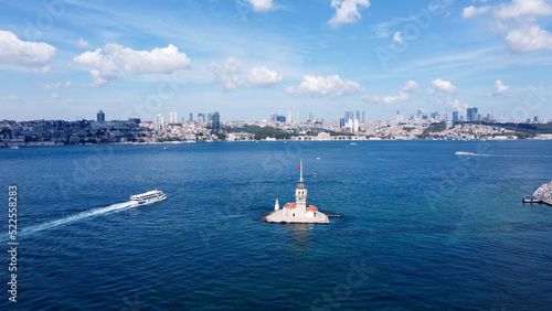 Istanbul - Turkey, September 8, 2021, Aerial Drone View of Maiden's Tower in Uskudar Istanbul - Kiz Kulesi, Turkey