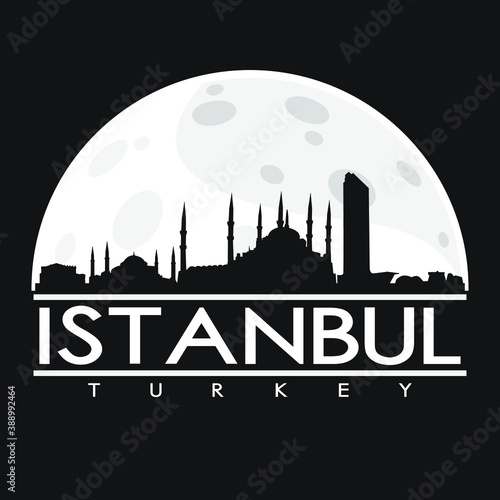 Istanbul Turkey Full Moon Night Skyline Silhouette Design City Vector Art.