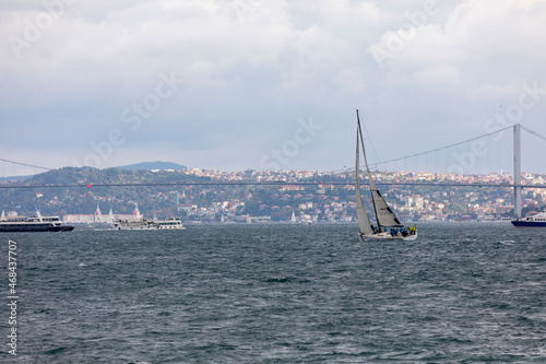 istanbul, turkey, october 29, 2021: the 2nd stage of the presidental international yacht race has been completed in istanbul's bosphorus strait