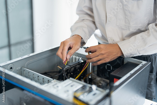 IT Engineer installing Hardware Equipment Development Facility Engineer Maintenance computer Motherboard Electronic repair shop technology business