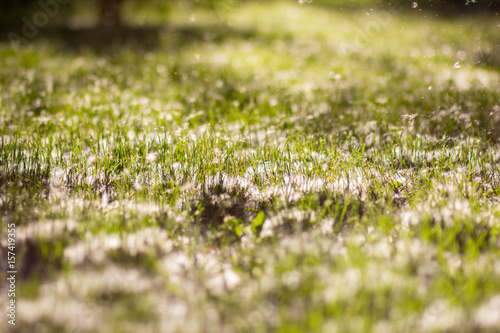 It is a lot of Poplar down in a grass. Background
