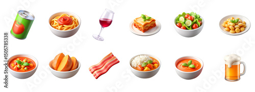 Italian & Mexican Cuisine 3D Icon Big Set – Glossy Minimal Emoji Style, Isolated PNG Objects