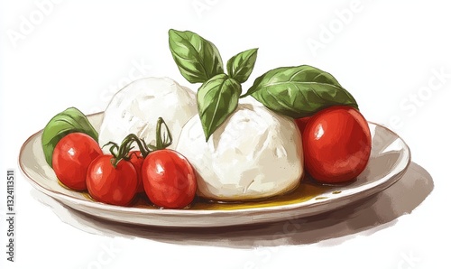 Italian Caprese salad with tomatoes, mozzarella, and basil on a plate.