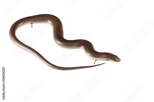 Italian three-toed skink (chalcides chalcides) on white background.