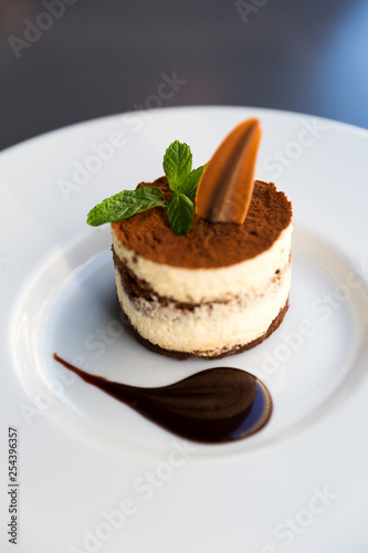 Italian Tiramisu Dessert with Fresh Mint Leaf