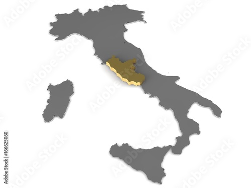 Italy 3d metallic map, whith lazio region highlighted 3d render