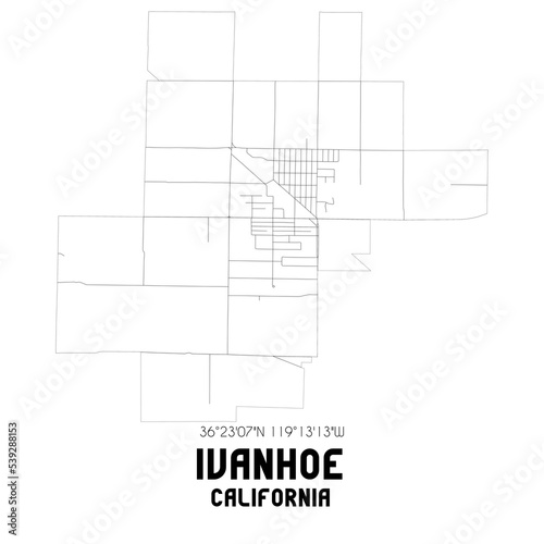 Ivanhoe California. US street map with black and white lines.