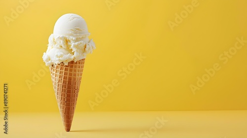 Ivory Ice Cream Cone on a yellow Background with Copy Space