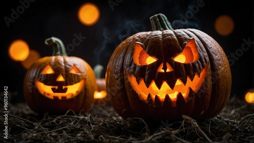 Jack O’Lantern’s Gaze - A close-up of a spooky carved pumpkin with a menacing expression.