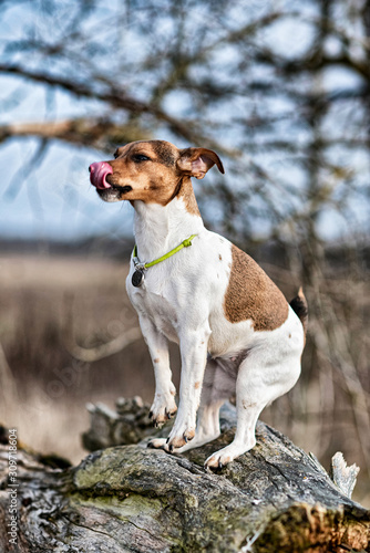 Jack Russell Terrier for a walk. Photographed in retro style.