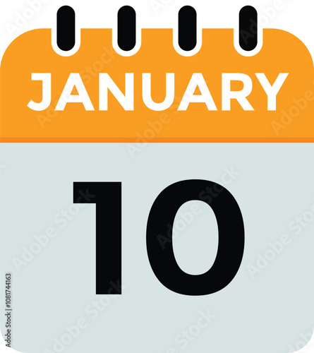 January 10 Calendar Day or Calender Date for Deadlines or Appointment. calendar date icon on white background.