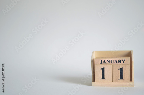 January 11, Empty white background with number cube on the table.