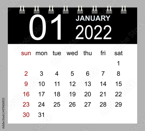 January 2022. Vector monthly calendar template 2022 year in simple style for template design. Week starts from Sunday.