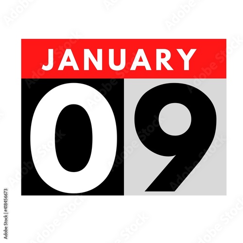 January 9 . flat daily calendar icon .date ,day, month .calendar for the month of January