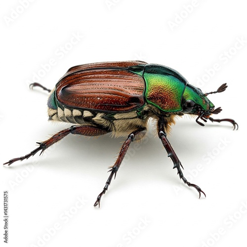Japanese Beetle Macro on Leaf on White Isolated Background
