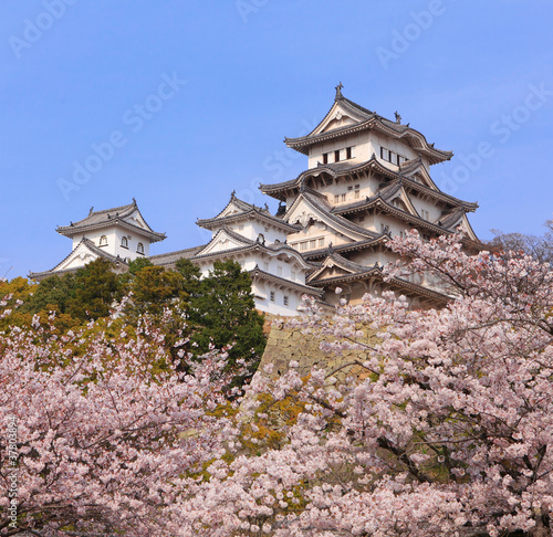 Japanese castle and Beautiful pink cherry blossom shot in japan
