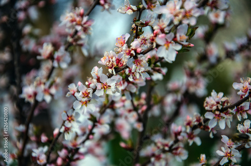Japanese cherry blossom, close-up. tree blossoming in spring. Cherry blossom background