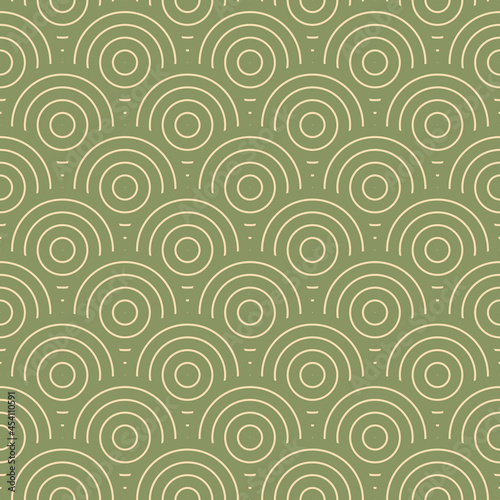 Japanese classic green waves pattern in modern design. Ready for seamless background, fabric, textile, paper decoration. Asian sea waves pattern. Japanese traditional wavy geometry elements pattern.