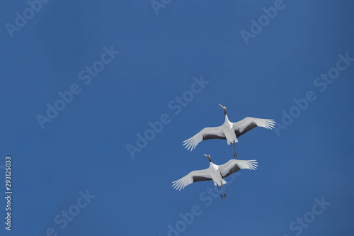 Japanese cranes on the clear blue sky
